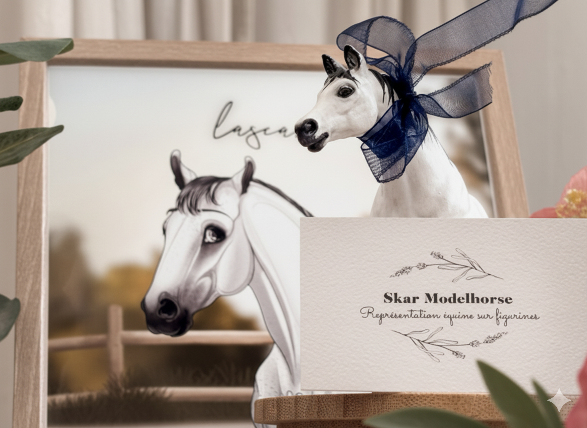 D’un côté, Skar Modelhorse, entreprise française spécialisée dans la figuration équine, dirigée par Laurine Blondin, qui rend honneur comme un hommage vivant à travers une figurine, un souvenir précieux pour les passionnés de chevaux.